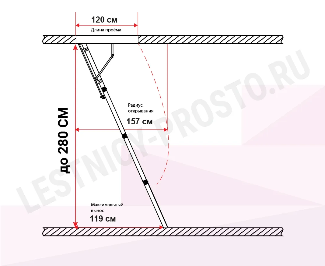 Герметичность всей конструкции достигается благодаря утеплению крышки люка и контурному уплотнению по периметру, что предотвращает возможные теплопотери. Чердачную лестницу очень легко разложить и сложить благодаря наличию специального стержня с четырехугольной насадкой. Установленные в лестнице угловые петли-шарниры нового образца придают ей высокую прочность и надежность, а также предохраняют короб от возможной деформации. Основное преимущество чердачной складной металлической лестницы LMK сводится к ее небольшим габаритам при сохранении высокой функциональности, прочности, надежности и эстетичности конструкции. Монтировать лестницу очень просто, для этого не придется затрачивать много времени и сил. Применение лестничной конструкции этого типа позволяет существенно экономить пространство. Монтажный комплект LXK в комплекте не поставляется.