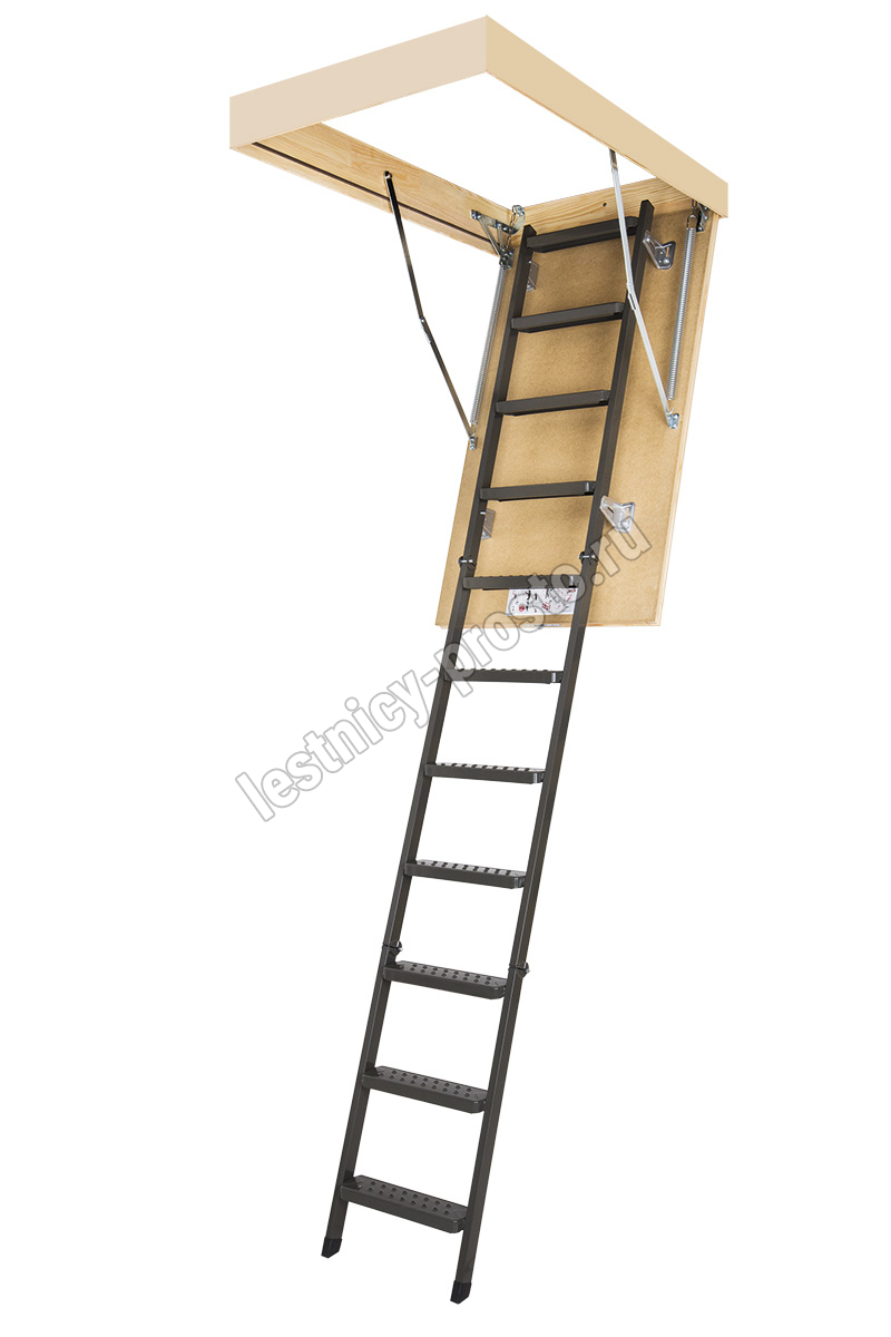Чердачная металлическая лестница LMS – это надежная складная конструкция, состоящая из марша и термоизоляционной крышки, изготовленной из ДВП и окрашенной в бежевый цвет. Герметичность всей конструкции достигается благодаря утеплению крышки люка и контурному уплотнению по периметру, что предотвращает возможные теплопотери. Чердачную лестницу очень легко разложить и сложить благодаря наличию специального стержня с четырехугольной насадкой. Установленные в лестнице угловые петли-шарниры нового образца придают ей высокую прочность и надежность, а также предохраняют короб от возможной деформации. Основное преимущество чердачной складной металлической лестницы LMS сводится к ее небольшим габаритам при сохранении высокой функциональности, прочности, надежности и эстетичности конструкции. Монтировать лестницу очень просто, для этого не придется затрачивать много времени и сил. Применение лестничной конструкции этого типа позволяет существенно экономить пространство. Монтажный комплект LXK в комплекте не поставляется.