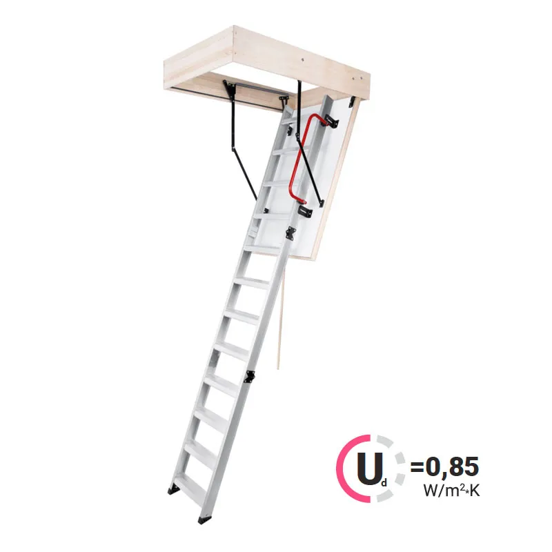 Лестница складная трехсекционная. Модель ALU PROFI идеальна для условий, когда чердак плохо утеплен и требует дополнительной теплоизоляции. Отличительной чертой лестницы ALUPROFI является легкая и чрезвычайно прочная лестница из алюминия высочайшего качества. Лестницы имеют нескользящие ножки, которые идеально прилегают к земле, предотвращают появление царапин на поверхности пола и придают лестнице эстетичный вид после ее резки.