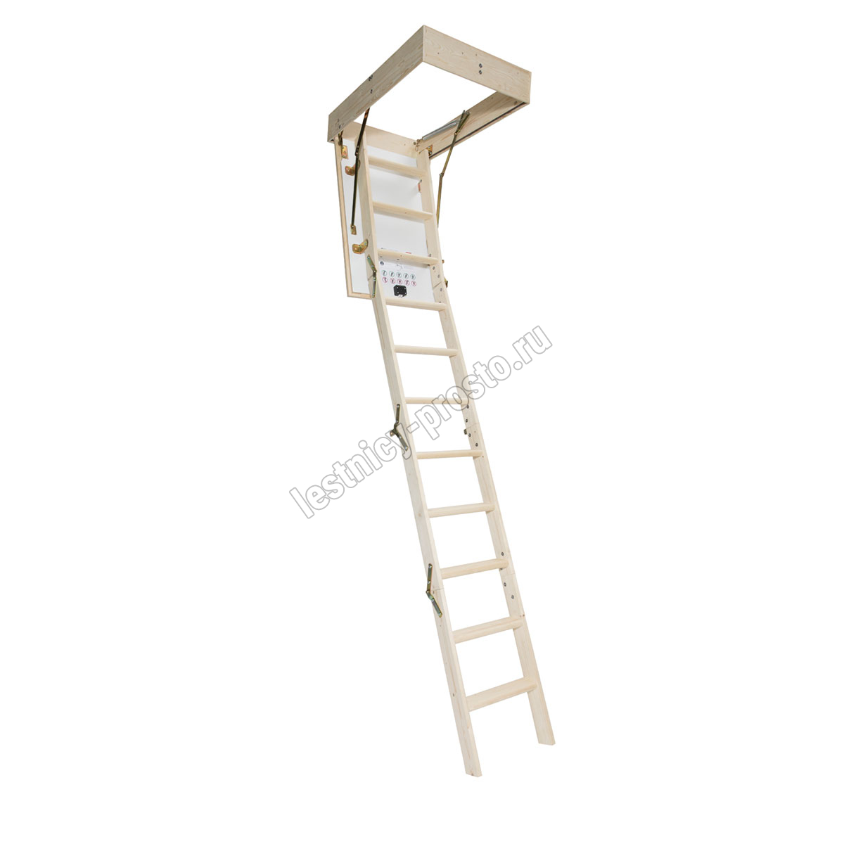 На ступенях лестницы антискользящие насечки. Люк с двух сторон облицован ДСП белого цвета.