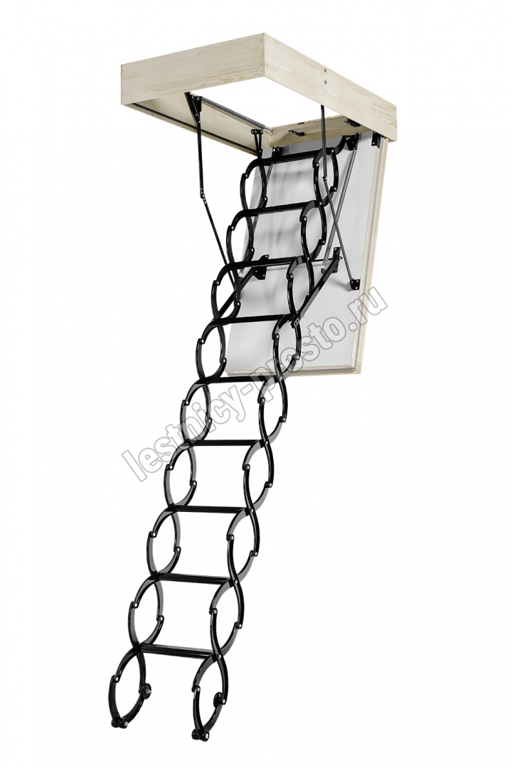 Модель лестницы, благодаря использованию цельнометаллической ножничной конструкции, идеально подходит для установки в помещениях высотой до 290 см. Выбор лестницы NOZYCOWE TERMO SUPER - это инвестиция, которая позволяет минимизировать потери теплого воздуха  и значительно снизить расходы на отопление.