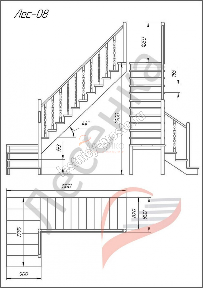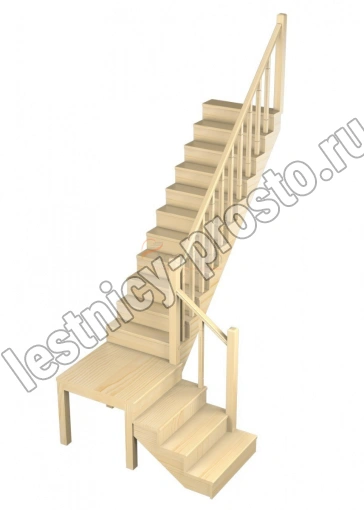 Деревянная межэтажная лестница ЛЕС-08, Лиственница с подступенкой