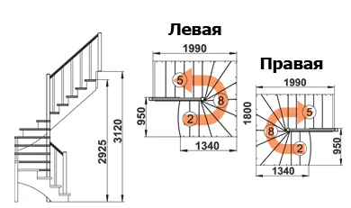 Высота лестницы 2925 - 3120