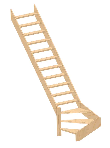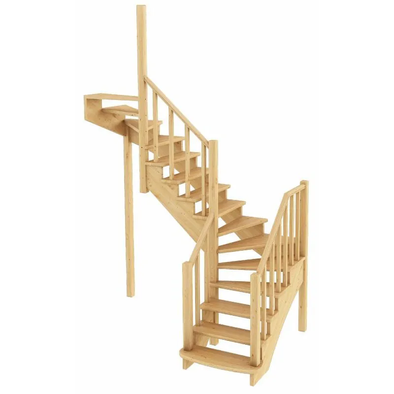 Базовый комплект включает в себя деревянные элементы лестницы и ограждения без какого-либо покрытия.