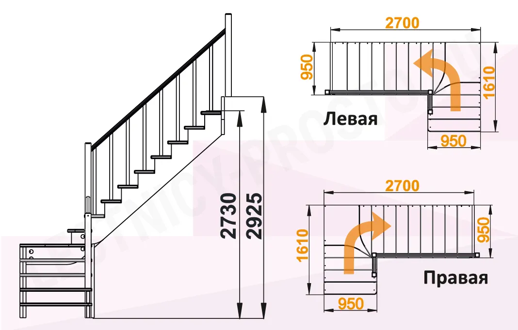 Высота лестницы 2730 - 2925