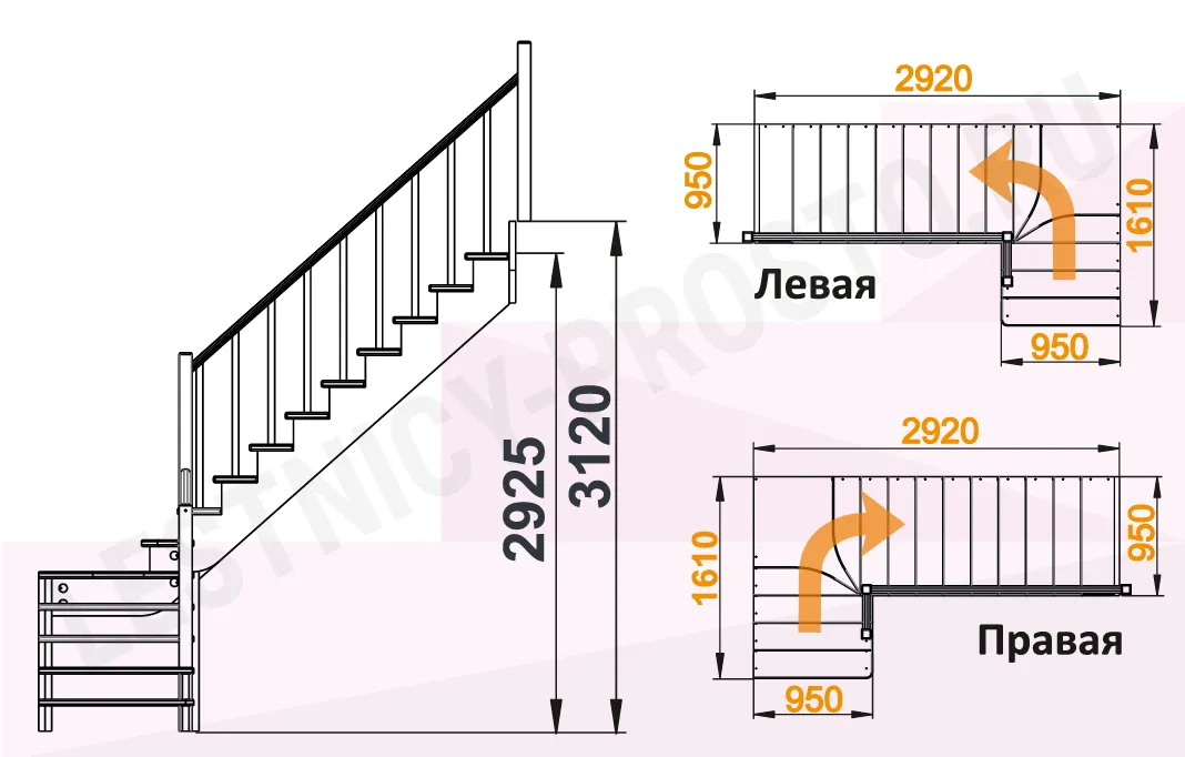 Высота лестницы 2925 - 3120