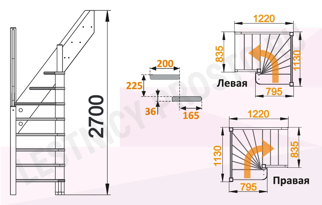 У лестницы  10 вариантов размера