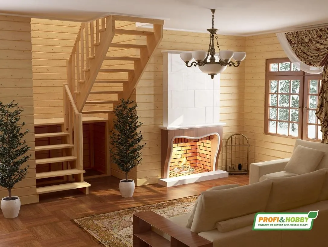 Ступени и поручень лестницы изготовлены из бука, остальные элементы из сосны.
