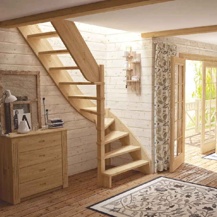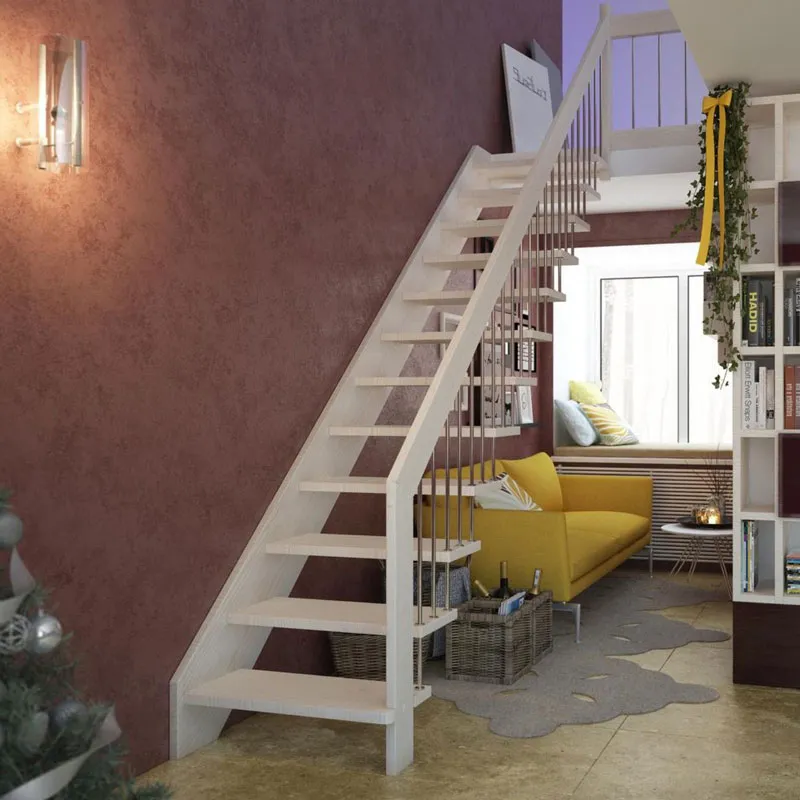 Ступени и поручень лестницы изготовлены из бука, остальные элементы из сосны.
