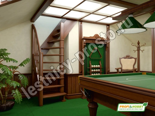 Ступени и поручень лестницы изготовлены из бука, остальные элементы из сосны.