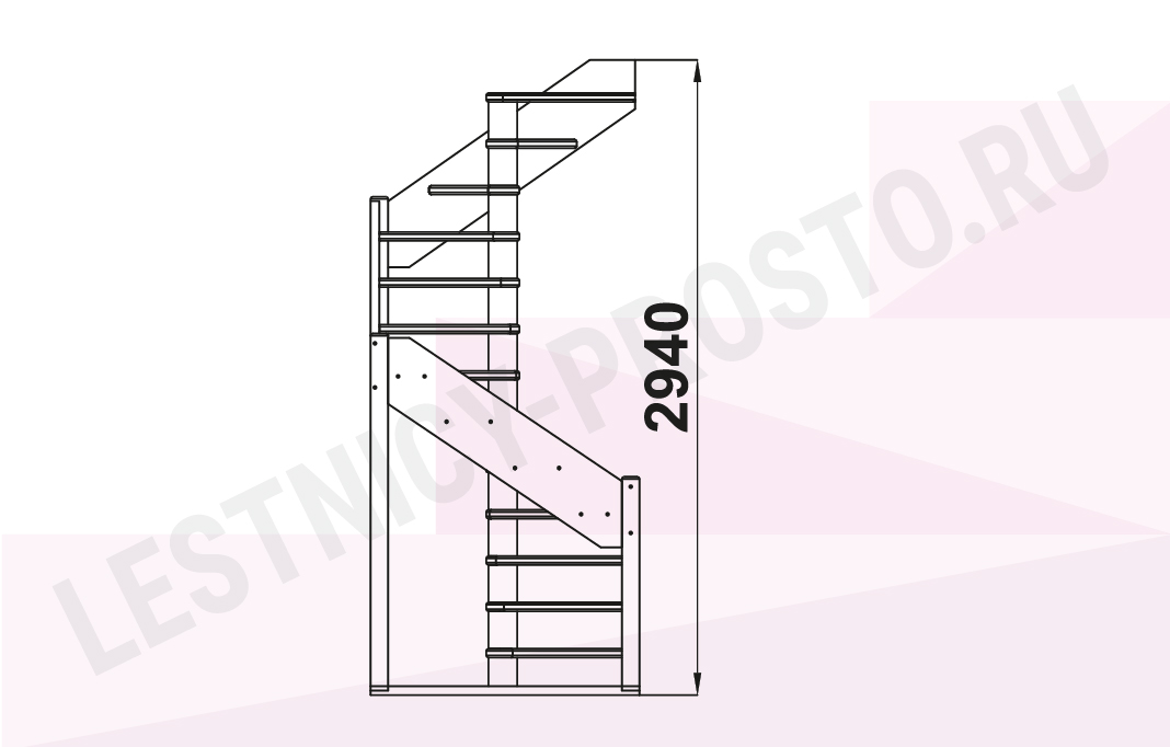 Схема лестницы ЛС-1.2хм с поворотом налево