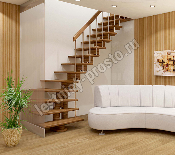 Базовый комплект включает в себя деревянные элементы лестницы и ограждения без какого-либо покрытия.