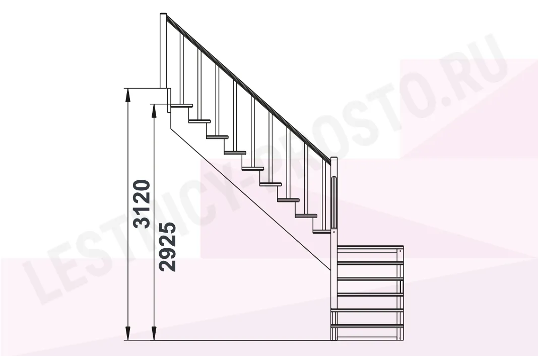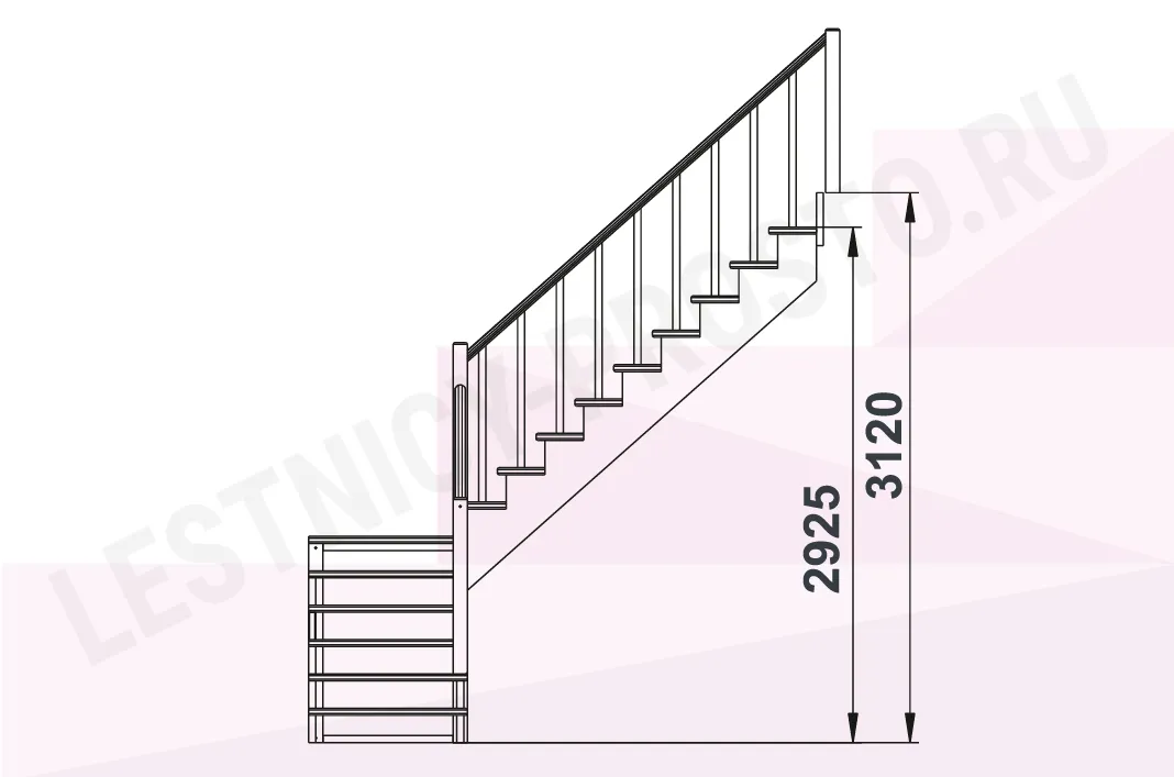 Высота лестницы 2925 - 3120 мм