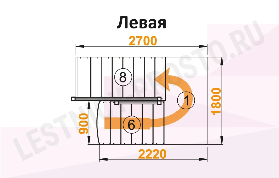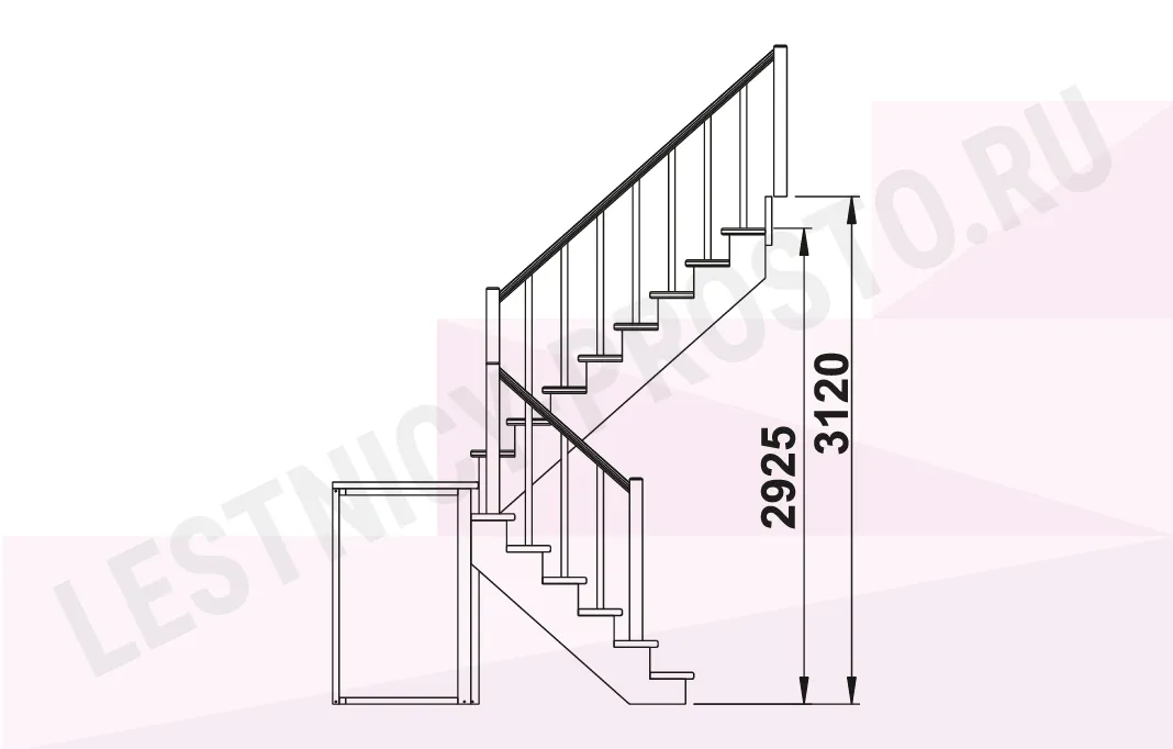 Схема лестницы К-004/3 с поворотом налево