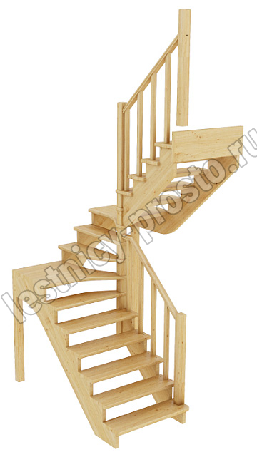Ограждение лестницы с одной стороны. Базовый комплект включает в себя деревянные элементы лестницы и ограждения без какого-либо покрытия.