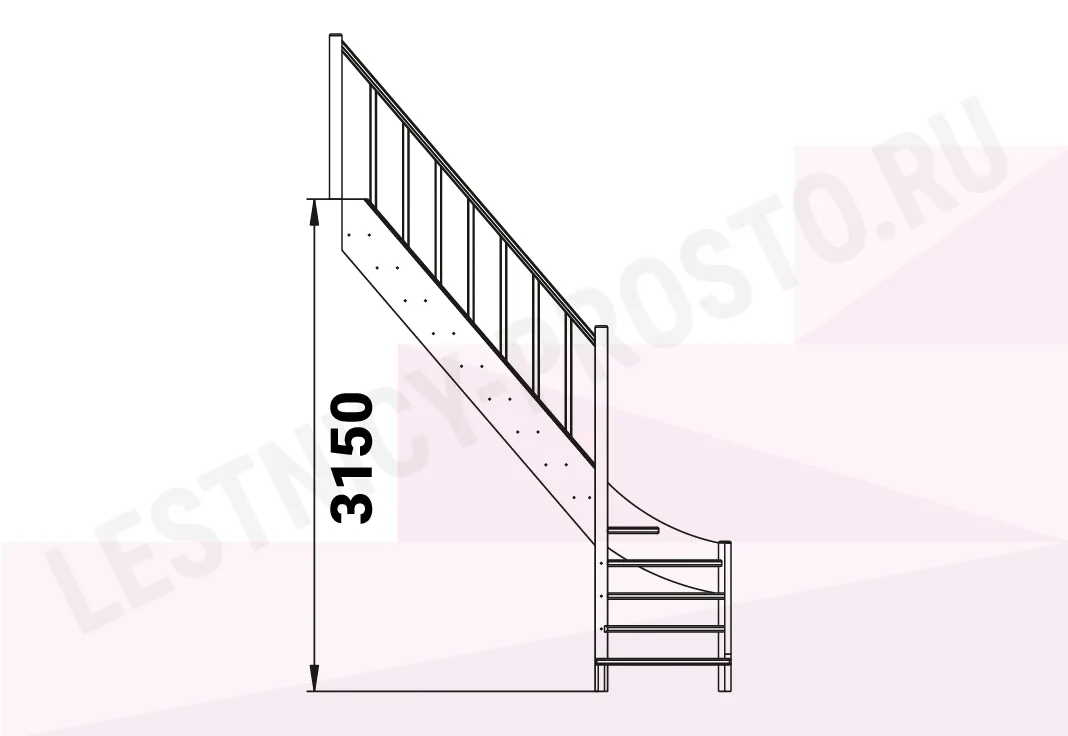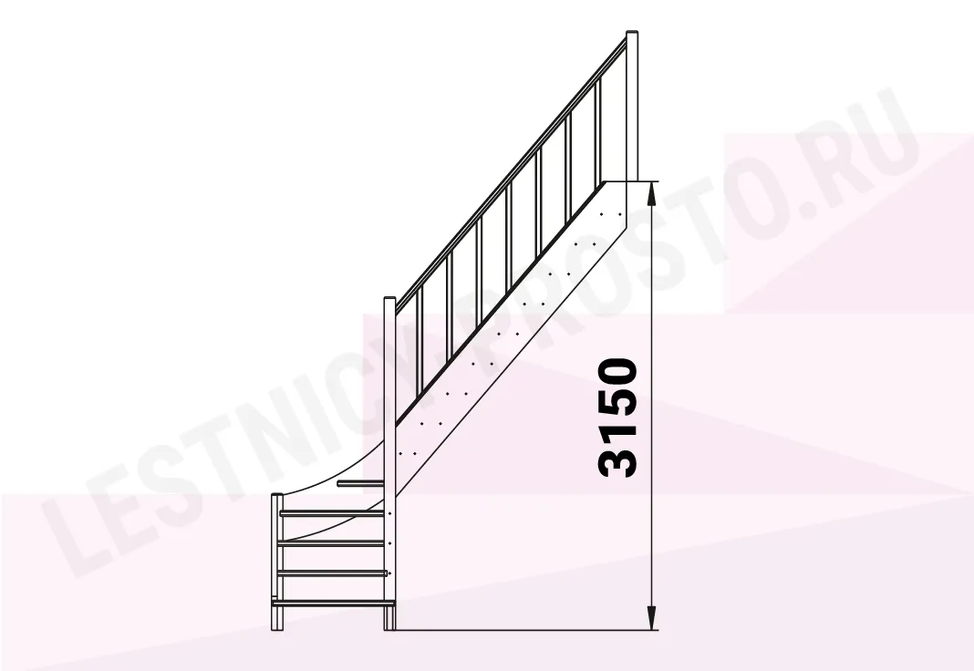 Обратите внимание! Данный вариант лестницы изготовлен из сосны эконом-класса, которая имеет местами видимые изменения цвета (в синий или серый) - это никак не отражается на прочности и надежности лестницы, но может быть заметно при прозрачных покрытиях или покраске в светлые цвета.