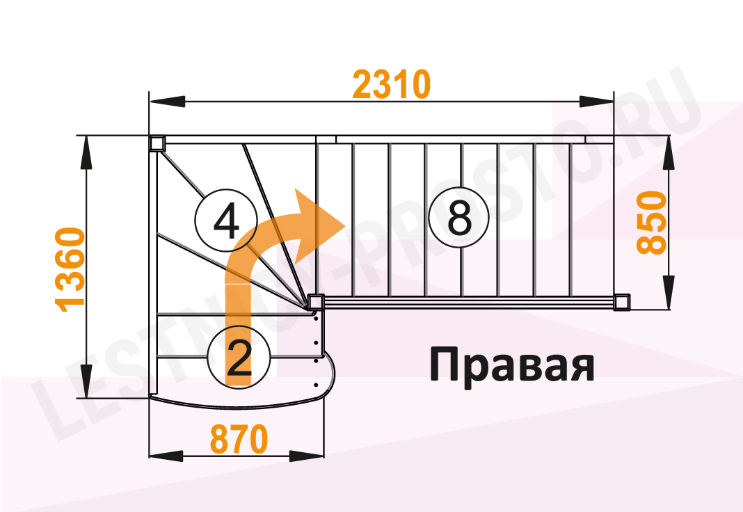 Лестница из сосны ЛС-07М/5 с подступёнками под покраску