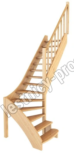 Базовый комплект включает в себя деревянные элементы лестницы с подступенками и ограждения без какого-либо покрытия.