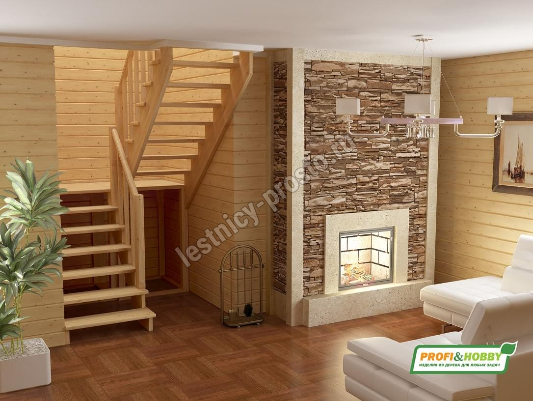 Ступени и поручень лестницы изготовлены из ясеня, остальные элементы из сосны.