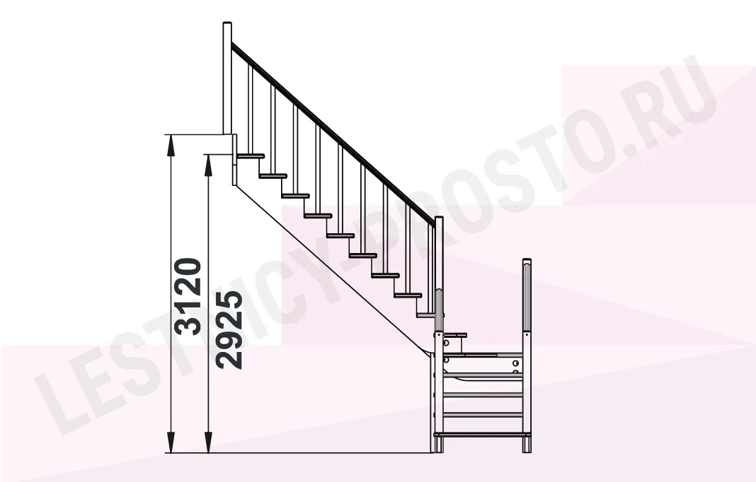 Высота лестницы 2925 - 3120 мм