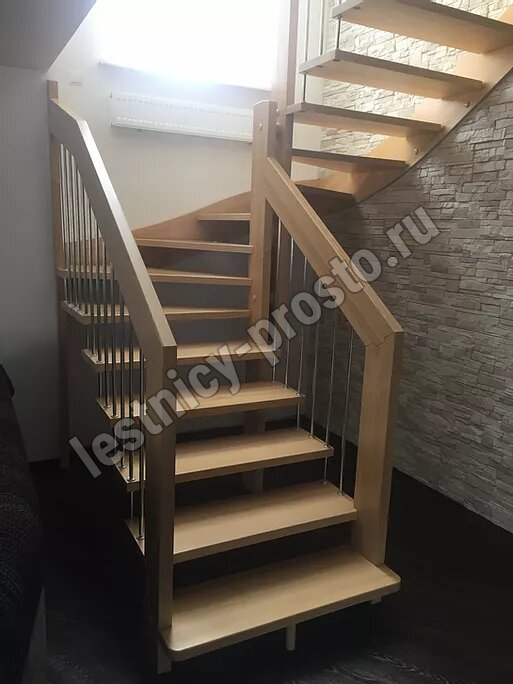 Надёжная современная лестница выполнена по немецкой технологии. Стоимость указана для лестницы с ограждением (с одной стороны); Поставляется в разобранном виде, в комплекте необходимый крепёж; Лестницу можно собрать самостоятельно; Так же, вы можете заказать услугу монтажа нашими специалистами; 4 вида породы дерева для изготовления лестницы: сосна, бук, ясень, дуб; возможна комбинированная лестница: из сосны (ступени бук, ясень, дуб); Деревянные элементы без какого-либо покрытия, отшлифованы, готовы к покраске. За дополнительную плату, вы можете изменить любые параметры, а именно: увеличить глубину ступени; увеличить ширину марша до 900 мм. и выше; заказать подступенки к лестнице; заказать отделку перекрытия (между 1-м и 2-м этажами); изготовить дополнительный промежуточный марш; заказать ограждение 2-го этажа; покраска в любой цвет или несколько цветов или покрытие защитными средствами; дополнение балясины из нержавеющей стали деревянными элементами; покраска балясин из нержавеющей стали порошковой краской в цвет RAL.