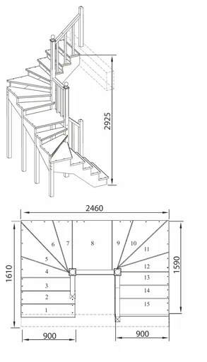 Комплектация Элементы лестницы, ограждение, крепёж, инструкция по сборке