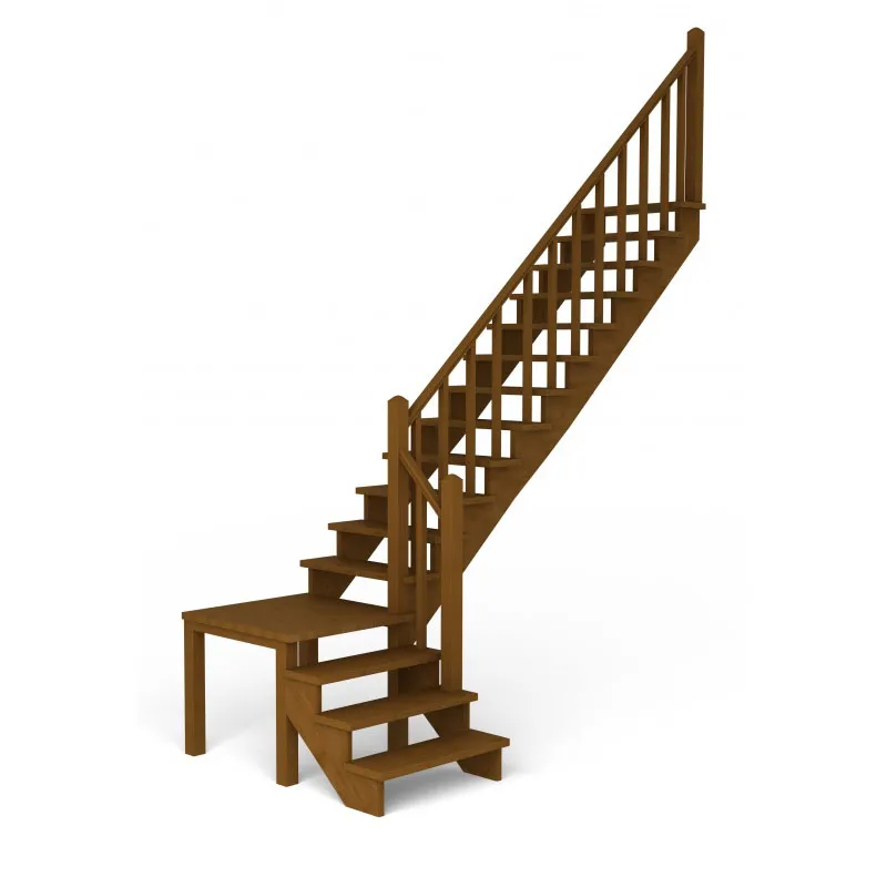 Лестница изготавливается под заказ. Возможны варианты подходящие под необходимые размеры проёма. Базовое ограждение можно заменить на кованое или точеное. Лестницу можно дополнить подступенями, бортиками, миниподступенями. Первую ступень можно заменить на пригласительную - лекальную. Классическая модель поворотной лестницы раскрывает всю природную красоту натуральных материалов. У лестницы комфортная высота шага, удобный широкий марш и угол подъема. Указана стоимость лестницы без какого-либо покрытия.