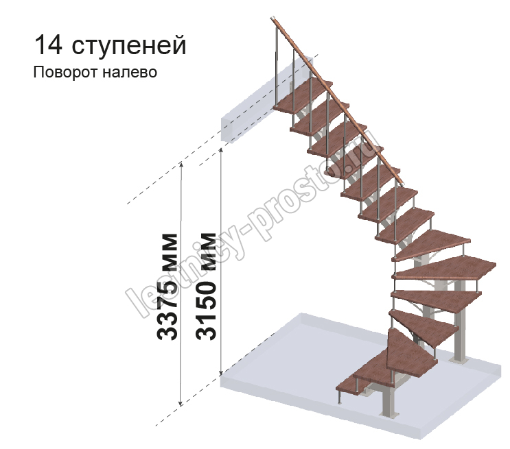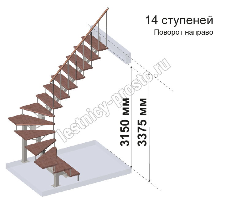 Комплект ограждений для П-образной лестницы MONO h337.5 из 14 ступеней.