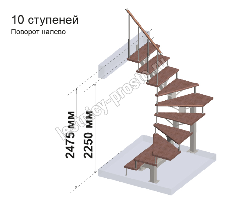 Комплект ограждений для П-образной лестницы PROSTO MONO из 10 ступеней.