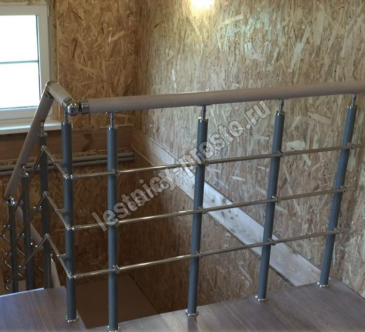 Комплект ограждений для г-образной лестницы на металлокаркасе PROSTO DUE или PROSTO DOUBLE из 12 ступеней. <br>