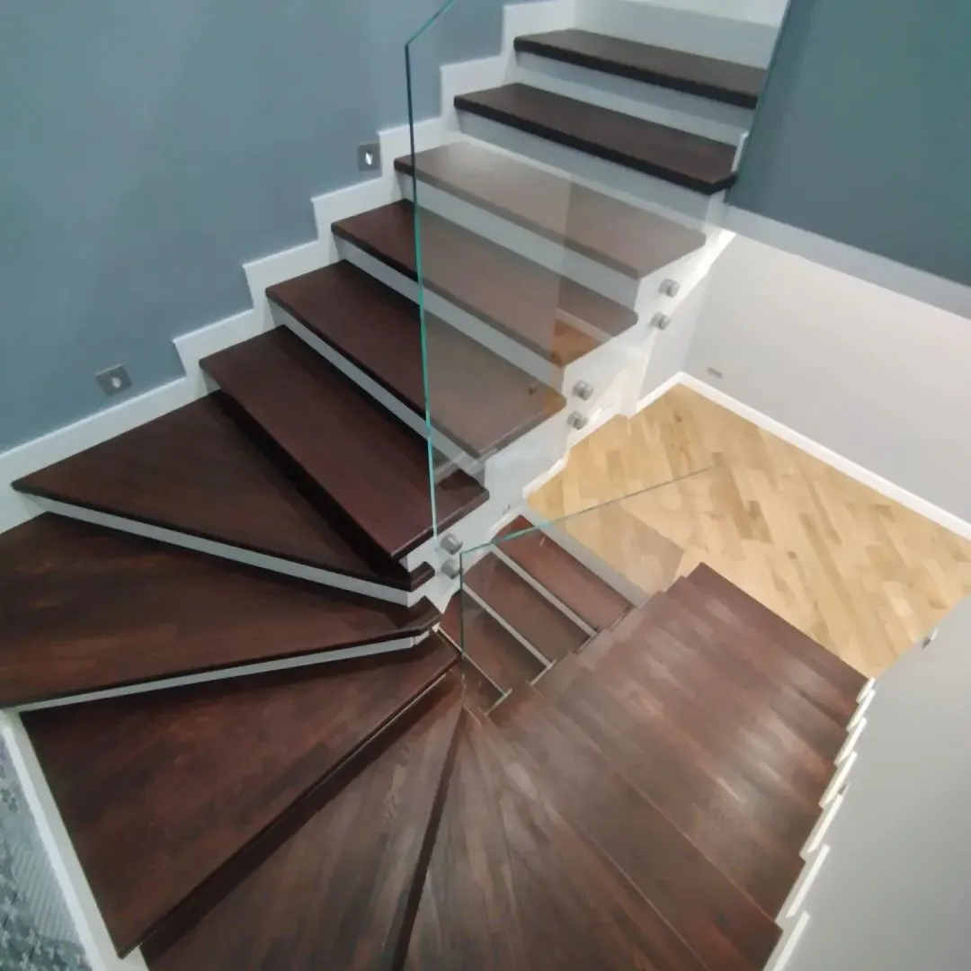 Изготавливаются из поливинилхлорида, защищают пол от возможных царапин, делают лестницу более устойчивой, облегчают подгонку длины лестницы, когда ее необходимо немного укоротить, за счет того, что в своей конструкции такая насадка уже имеет скос и две направляющие лестницы достаточно обрезать под прямым углом. Плотно одеваются на края двух направляющих и фиксируются еще и саморезом - закручивается снизу (в деревянных моделях).