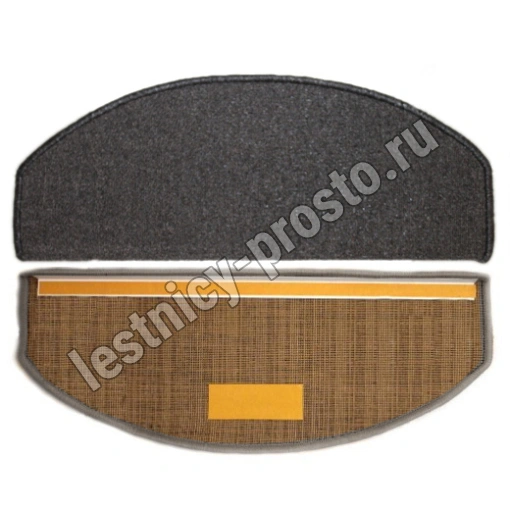 Ковровые накладки защищают ступени лестницы от изнашивания и служат безопасности, обеспечивая нескользящую поверхность. Края изделия окантованы. Внутренняя сторона ковровой ступени имеет специальные липкие накладки, для фиксации на ступеня лестницы.