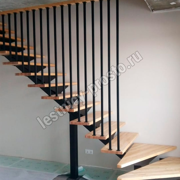 Лестница PROSTO MONO Г-образная h315 см, ступени лиственница