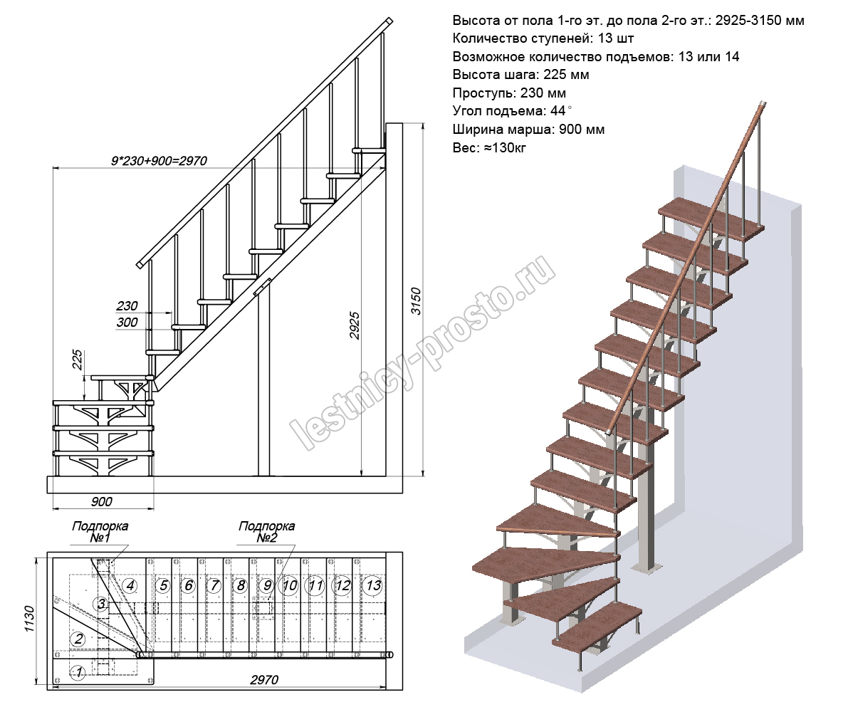 - таким образом вы получаете возможность увеличить общую высоту подъёма лестницы до необходимой.