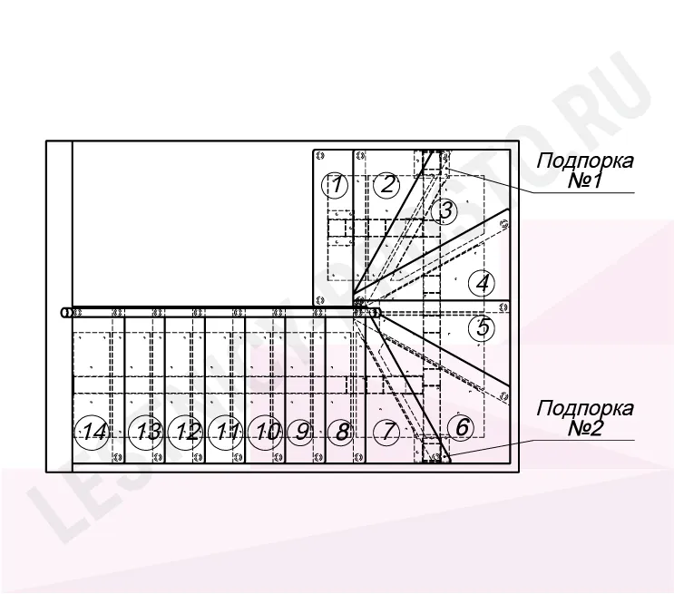 Высота лестницы 3150 - 3375 (14 ступеней) мм