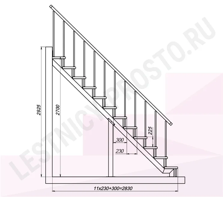 Лестница PROSTO MONO прямая, h292.5 см, ступени хвоя