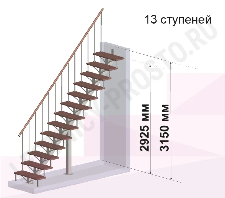Лестница PROSTO MONO прямая, h315 см, ступени лиственница