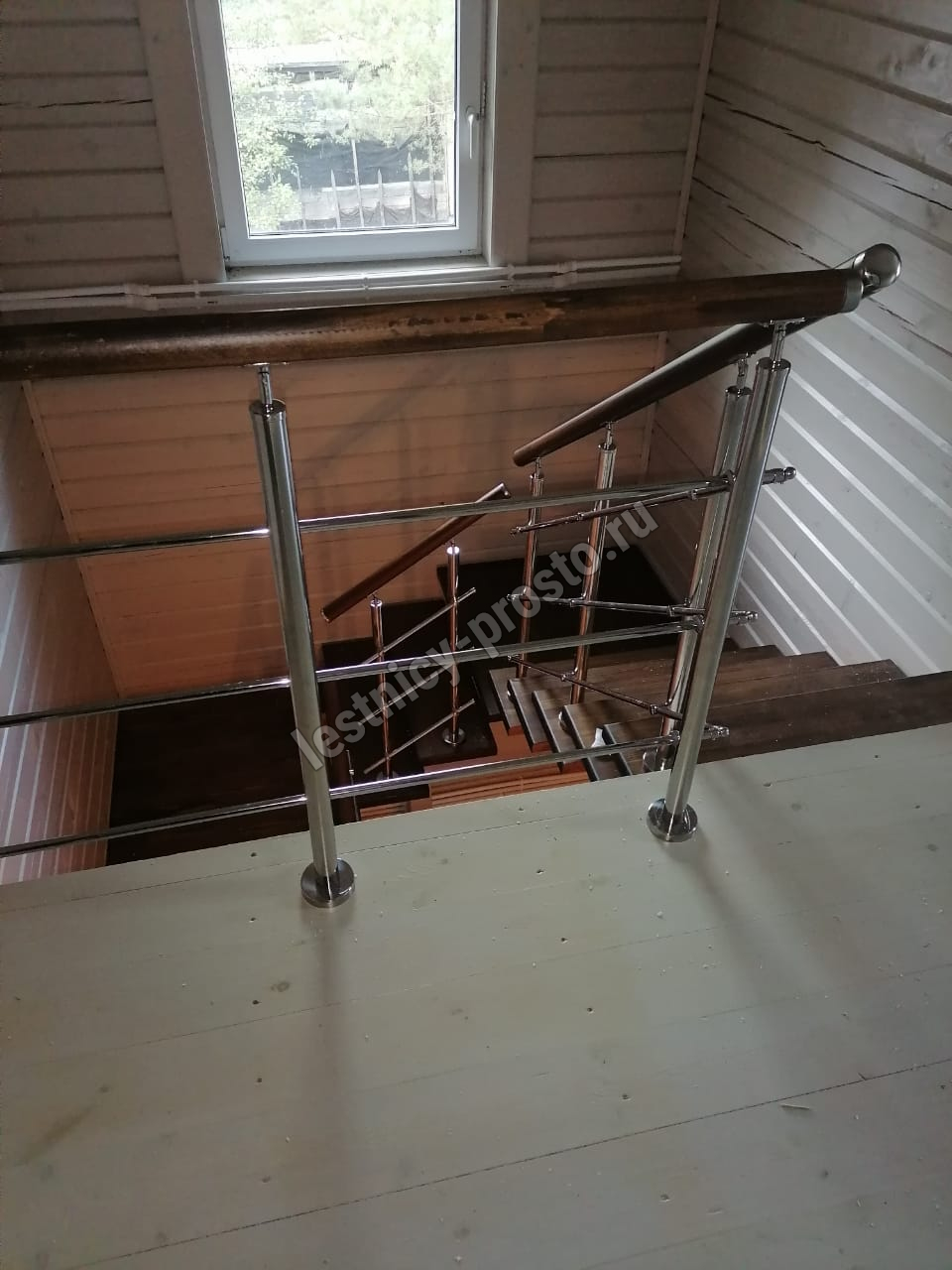 Ступени лестницы выполнены из лиственницы без какого-либо покрытия.