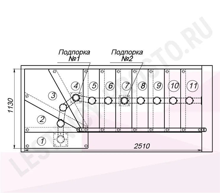 Высота лестницы 2475 - 2700 (11 ступеней) мм