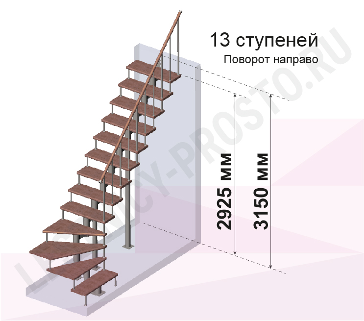 Высота лестницы 2925 - 3150 (13 ступеней) мм