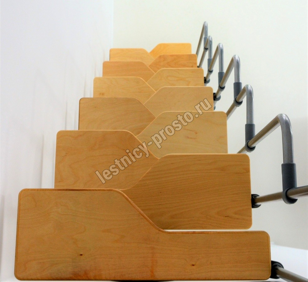 Ступени изготовлены из очень прочной покрытой лаком фанеры толщиной 30 мм.