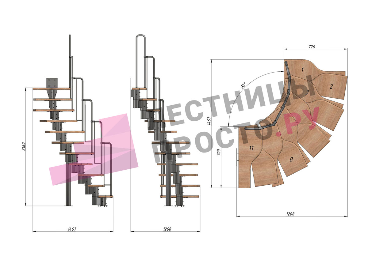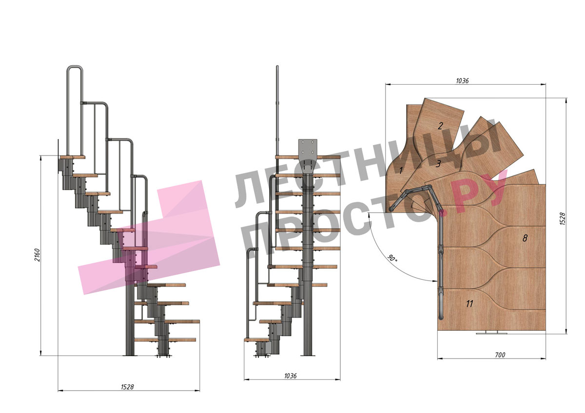 Лестница Prosto Urban Black гусиный шаг 700 мм, h198-288 см (11 ступеней), бук