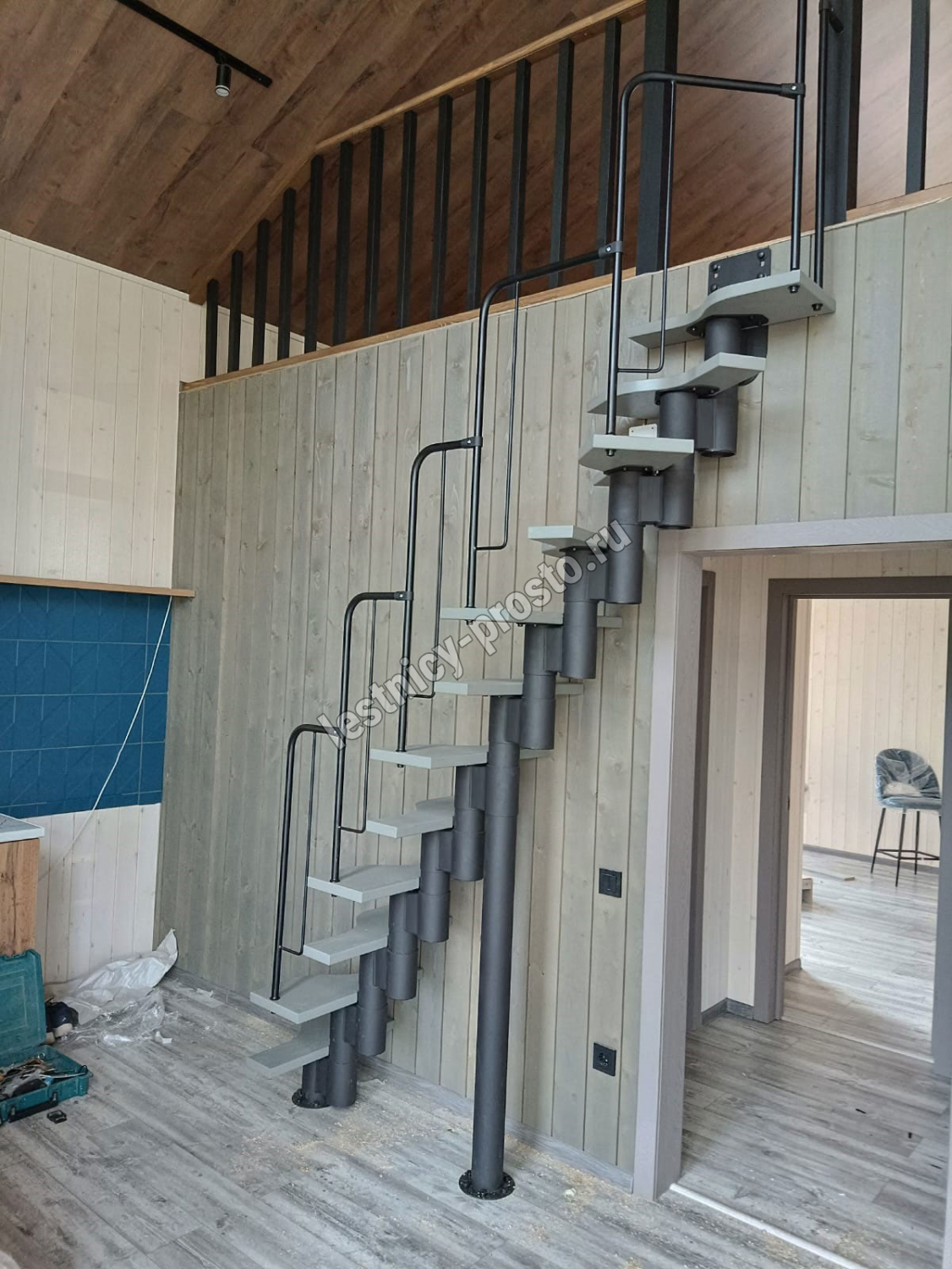 Лестница Prosto Urban Black гусиный шаг 700 мм, h216-312 см (12 ступеней), ясень
