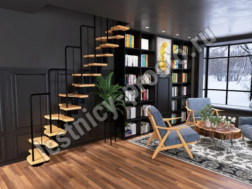 Лестница Prosto Urban Black гусиный шаг 700 мм, h198-288 см (11 ступеней), берёза мультиплекс