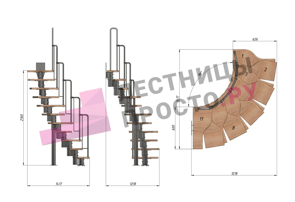Лестница Prosto Urban Black гусиный шаг 600 мм, h198-288 см (11 ступеней), бук