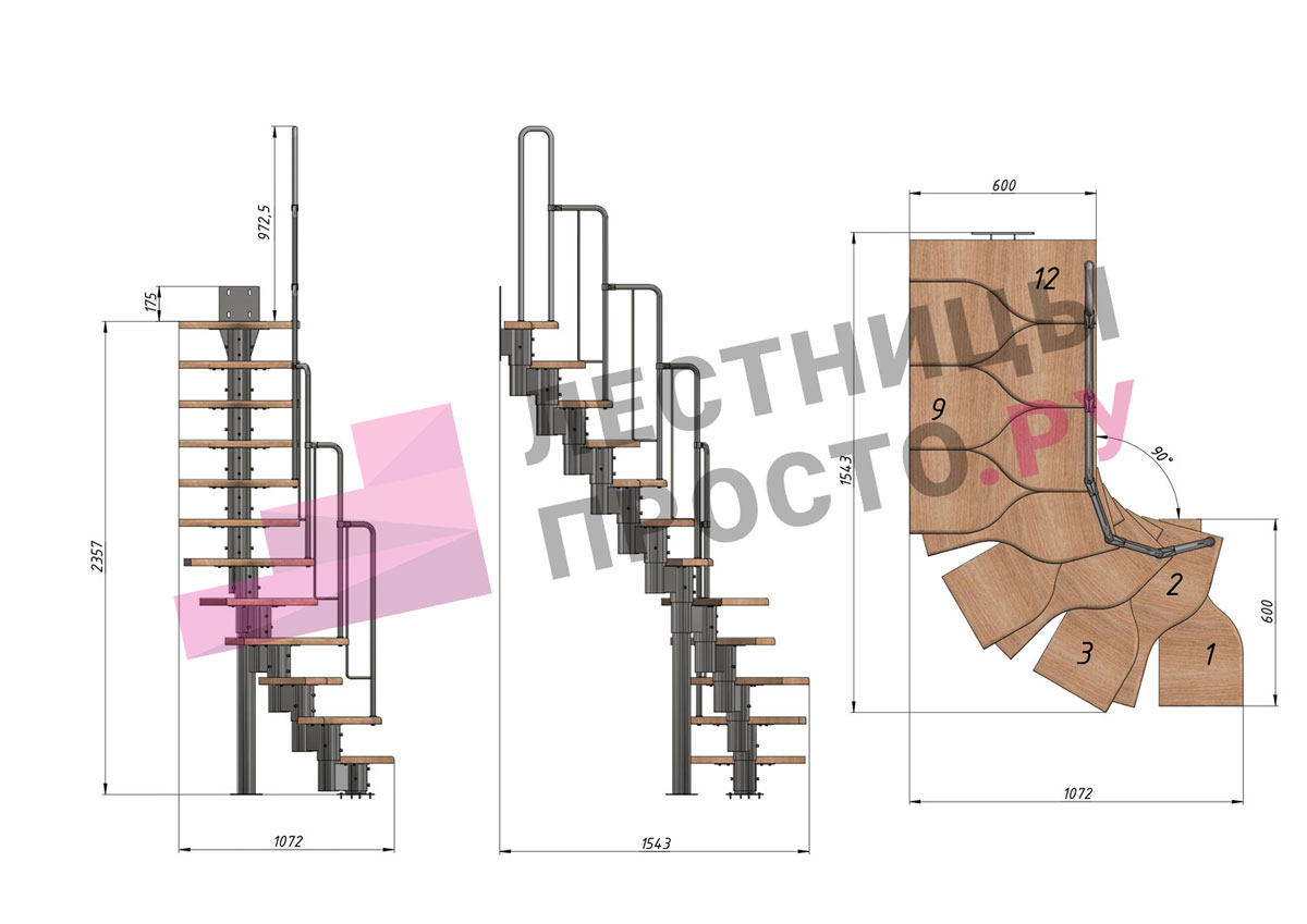 -Возможность установить лестницу как прямую, так и с поворотом внизу или вверху; при этом нужно понимать, что поворот менее удобен, чем прямой участок лестницы.