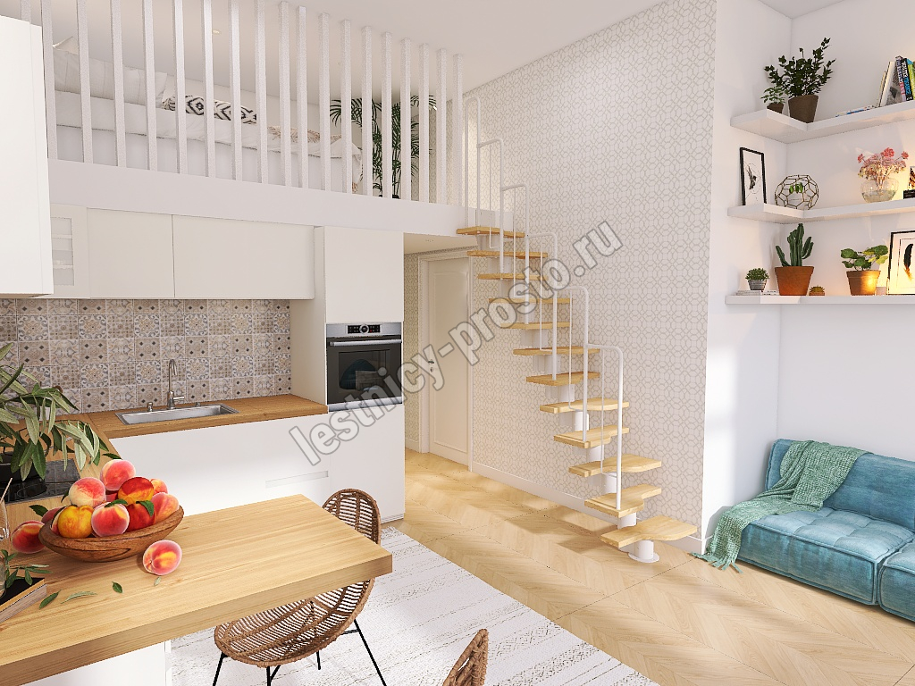 Лестница Prosto Urban White гусиный шаг 600 мм, h198-288 см (11 ступеней), бук