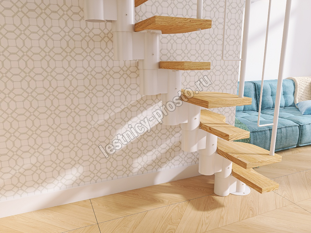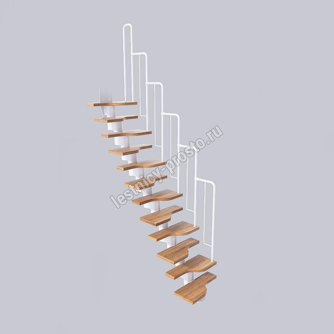 Лестница Prosto Urban White гусиный шаг 600 мм, h198-288 см (11 ступеней), ясень