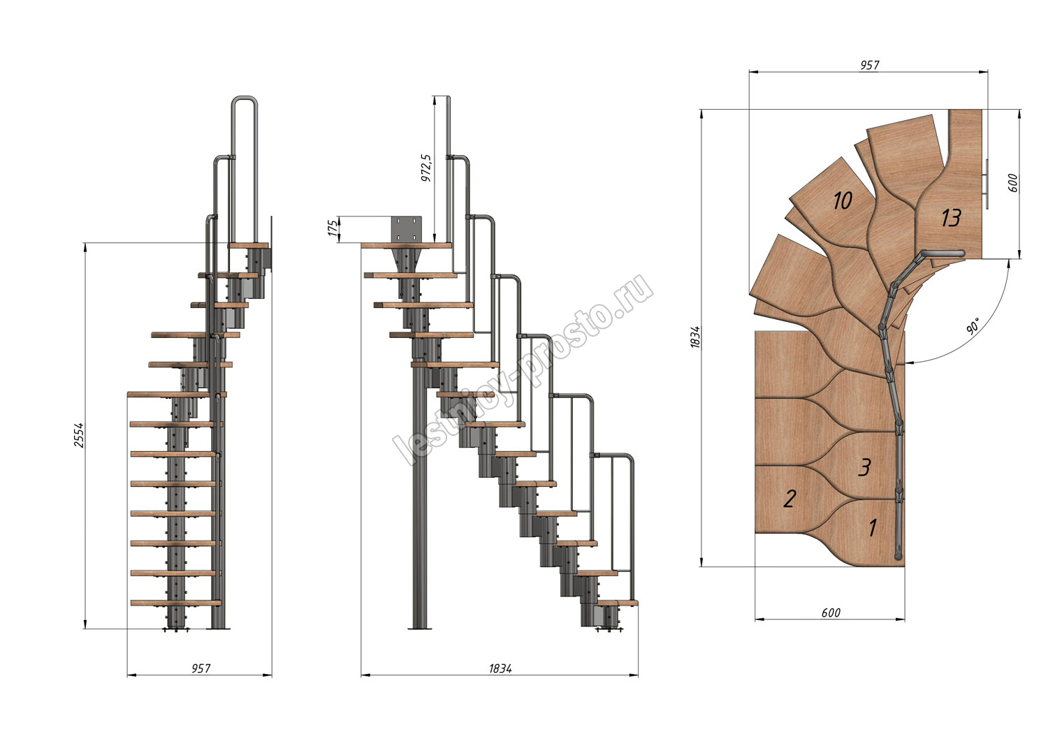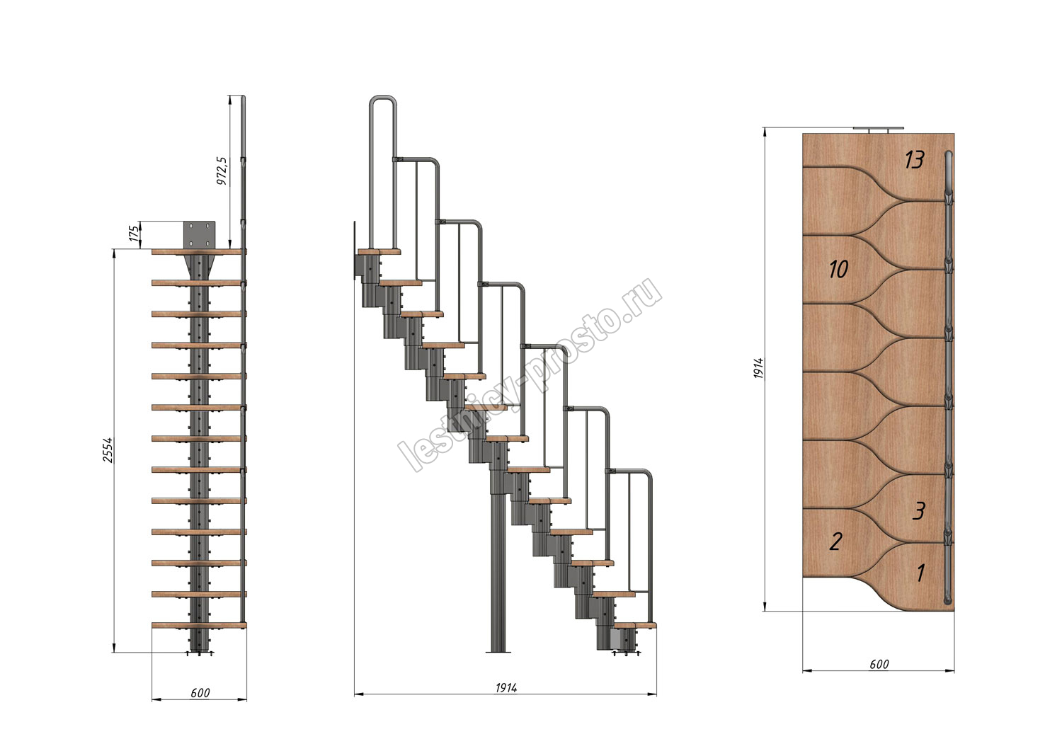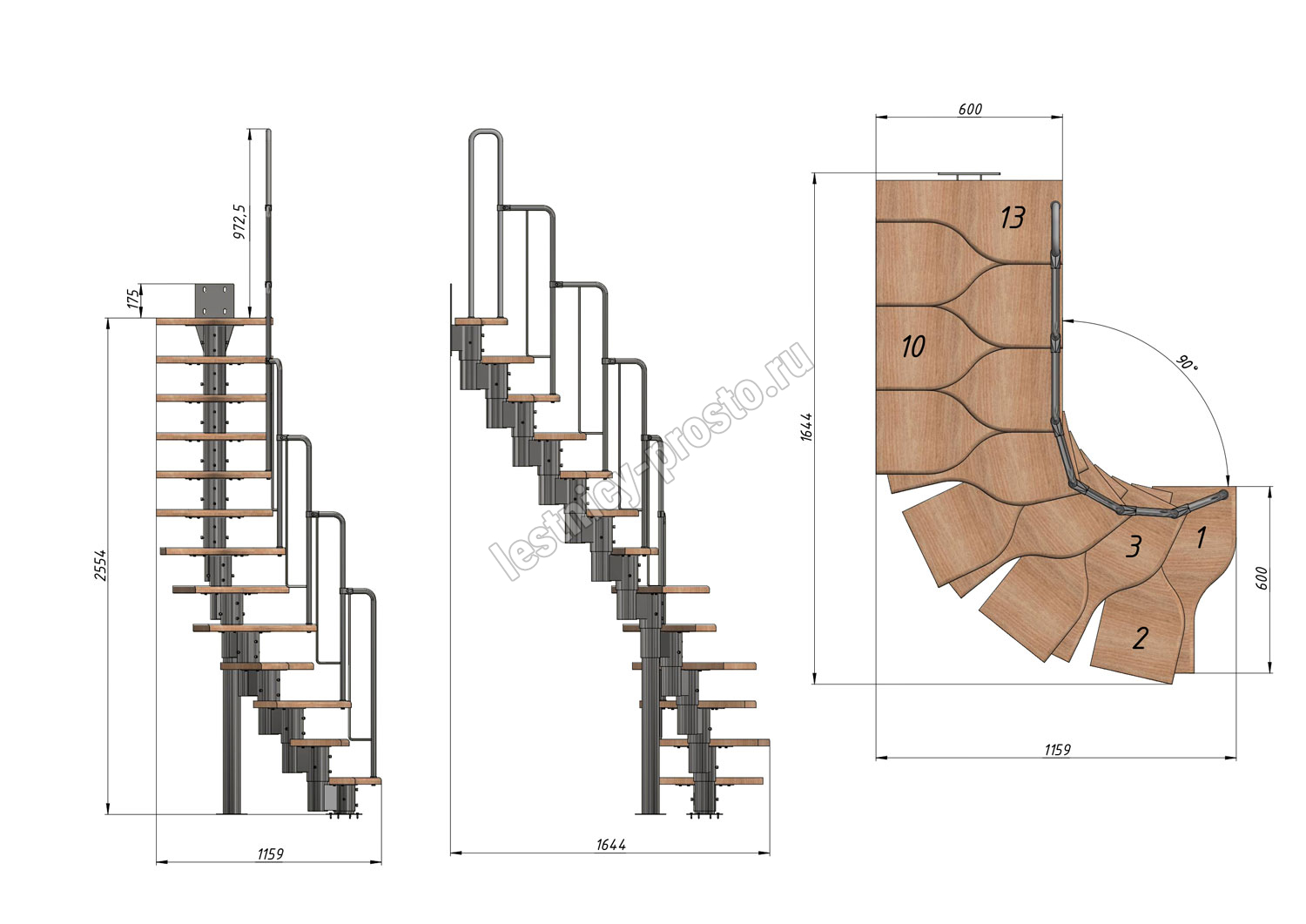 Высота лестницы 2340 - 3360 (13 ступеней) мм