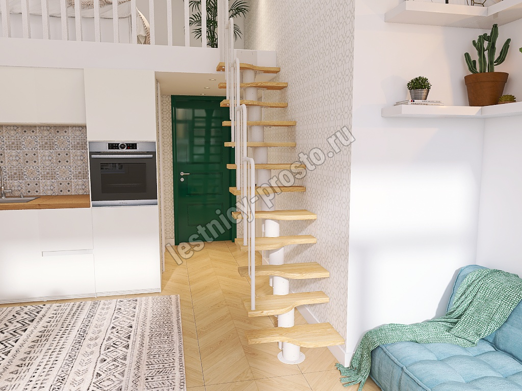 Лестница Prosto Urban White гусиный шаг 600 мм, h234-336 см (13 ступеней), ясень